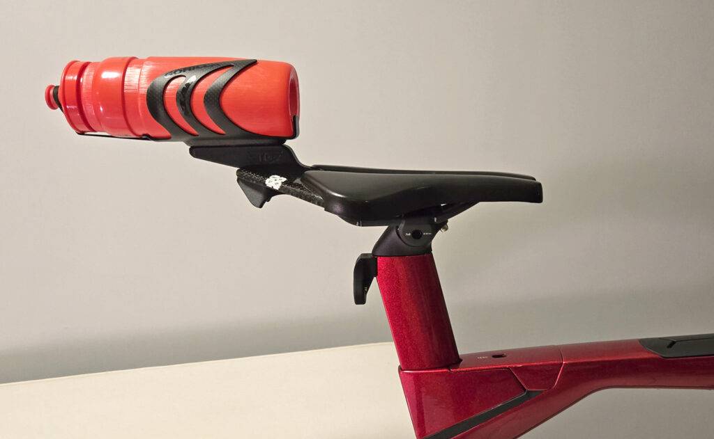 Puts the bottle horizontal on my bike and a bit elevated. Also leverages the same “transition hook” I used on the double side-by-side BTS kit, so that racking the bike in transition is easy and fast.