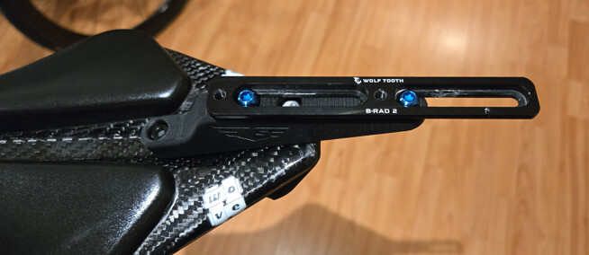 No tilt nor fore-aft adjustments in this version, although the latter one can easily be achieved with a Wolf Tooth BRAD-2 bracket or equivalent.